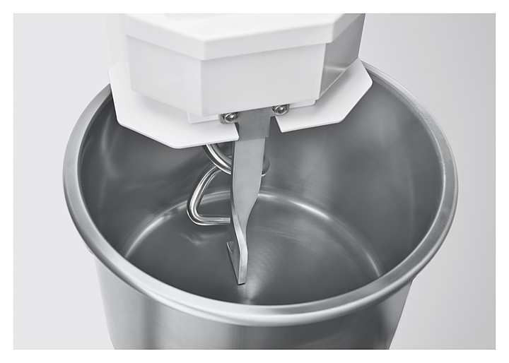 Корпус выполнен из высококачественной конструкционной стали с полимерным покрытием, металлические детали машины, контактирующие с продуктом во время замеса (спираль, дежа, нож) - из нержавеющей стали AISI 304.