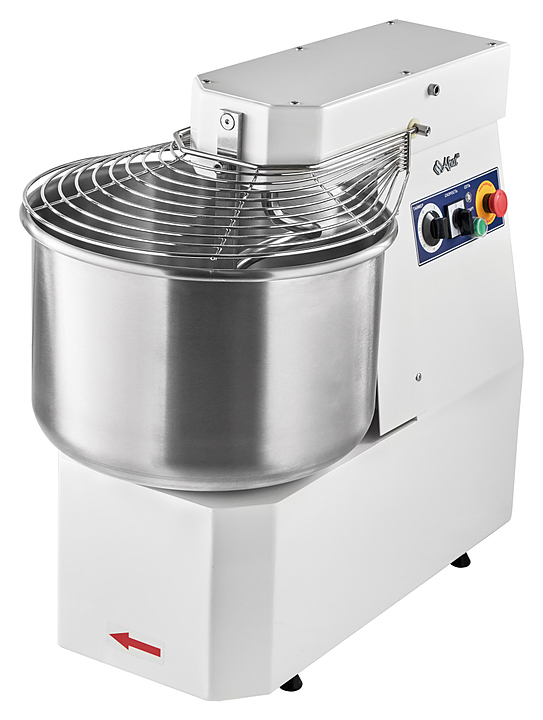 Корпус выполнен из высококачественной конструкционной стали с полимерным покрытием, металлические детали машины, контактирующие с продуктом во время замеса (спираль, дежа, нож) - из нержавеющей стали AISI 304.