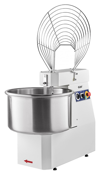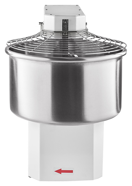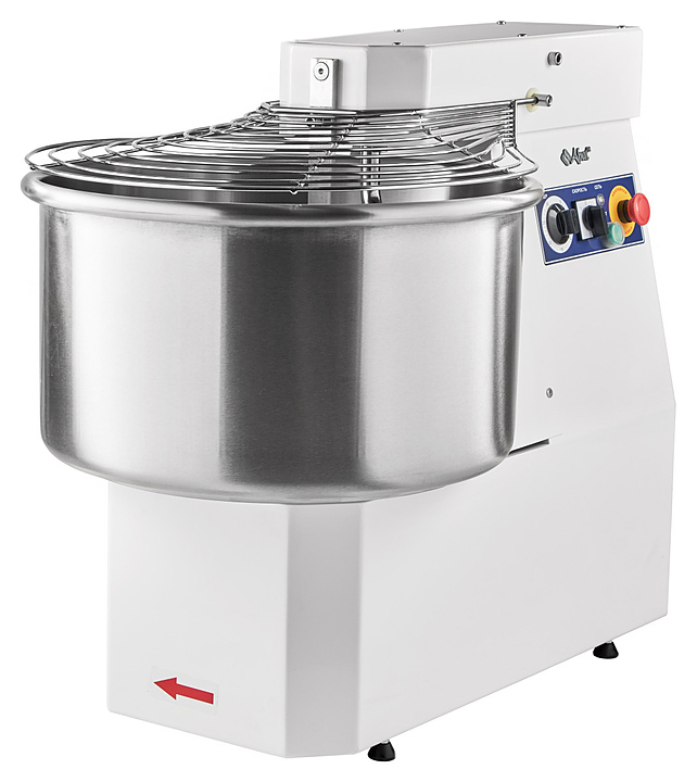 Корпус выполнен из высококачественной конструкционной стали с полимерным покрытием, металлические детали машины, контактирующие с продуктом во время замеса (спираль, дежа, нож) - из нержавеющей стали AISI 304.