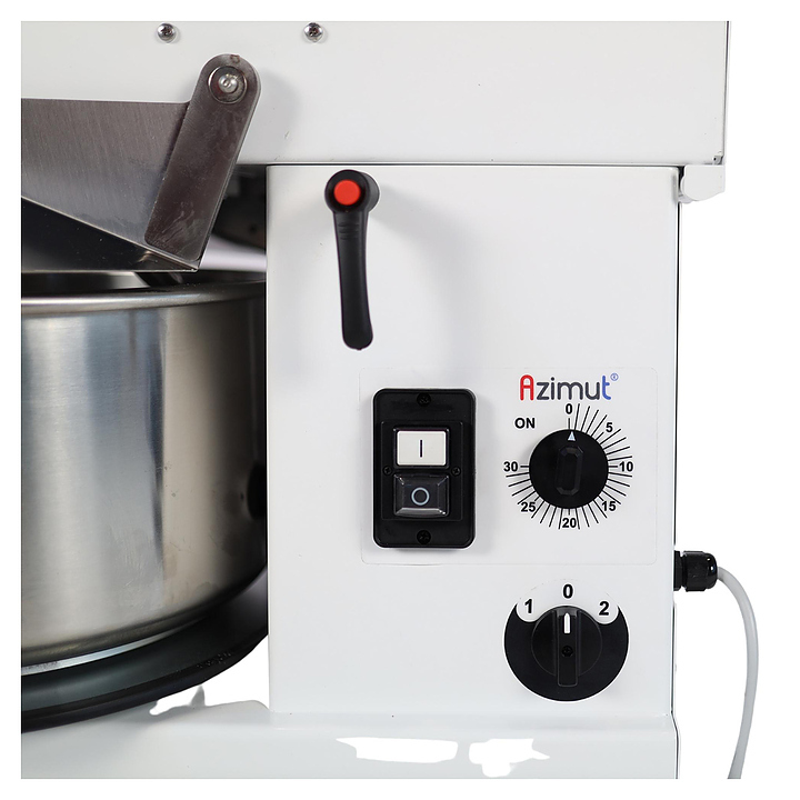 Спиральный тестомес Azimut MIXUP TER 20 2V EVO используется на предприятиях общественного питания и торговли для замешивания теста различной плотности, перемешивания соусов и начинок. Замешивание теста осуществляется одновременным вращением спирали и дежи. Модель оснащена подъёмной траверсой, рассекателем теста, электромеханической панелью управления, таймером и колесами. Дежа, спираль, центральная стойка и защитная решетка изготовлены из нержавеющей стали.