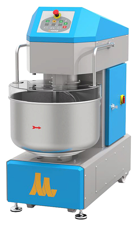 Спиральный тестомес Matas SM 60 предназначен для замешивания теста различной консистенции на предприятиях общественного питания и торговли. Модель оснащена стационарной дежой, 2 двигателями, цифровой панелью управления и колесами, облегчающими передвижение. Дежа и месильный орган выполнены из нержавеющей стали AISI 304.