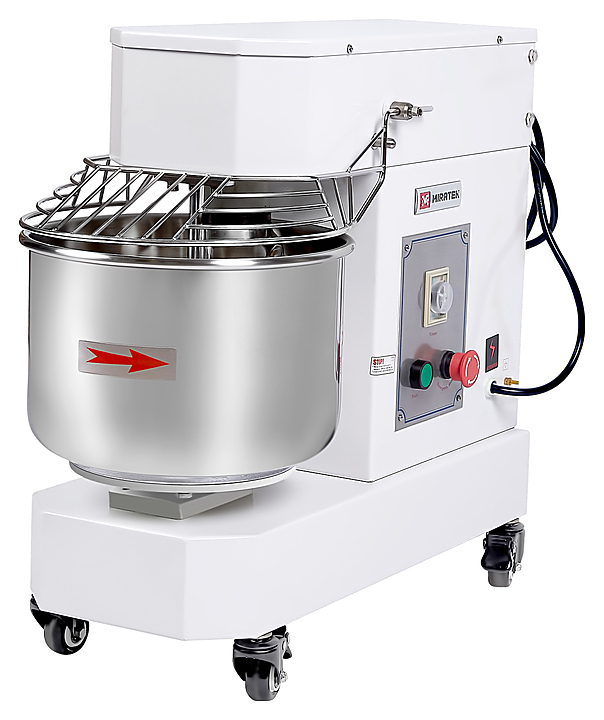 Спиральный тестомес Miratek PR-10 используется в пекарнях, кондитерских, на предприятиях общественного питания и торговли для замешивания теста с различной основой и консистенцией для выпечки большого ассортимента хлебобулочной продукции из пшеничного, ржаного и ржано-пшеничного теста.
