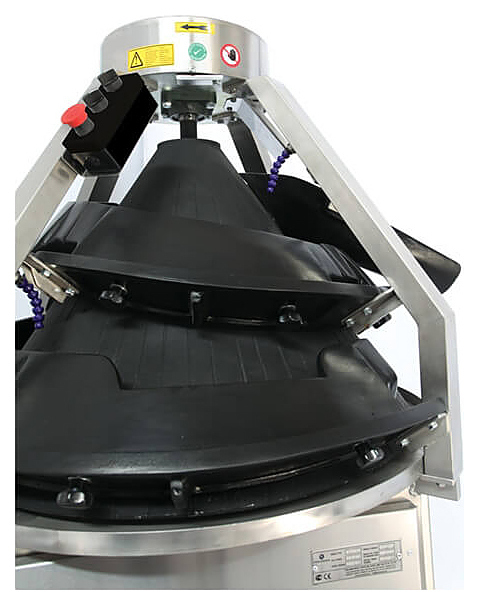 Тестоокруглитель Porlanmaz Bakery Machinery PMCR 2000 используется на предприятиях пищевой промышленности и общественного питания, в пекарнях и кондитерских для округления тестовых заготовок. Изделие обеспечивает высокую производительность и способствует уплотнению и повышению пористости теста, что повышает качество хлебобулочных изделий. Модель оснащена стационарными желобами. Корпус выполнен из нержавеющей стали, не подверженной коррозии, конус и желобы - из алюминия.