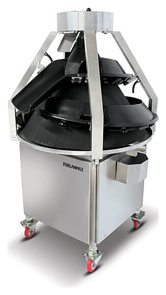 Тестоокруглитель Porlanmaz Bakery Machinery PMCR 2000 используется на предприятиях пищевой промышленности и общественного питания, в пекарнях и кондитерских для округления тестовых заготовок. Изделие обеспечивает высокую производительность и способствует уплотнению и повышению пористости теста, что повышает качество хлебобулочных изделий. Модель оснащена стационарными желобами. Корпус выполнен из нержавеющей стали, не подверженной коррозии, конус и желобы - из алюминия.
