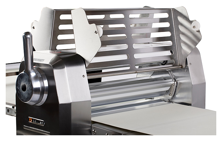 - Легко регулируемая толщина раскатываемого теста - оператор выбирает толщину слоя поворотом рычага без необходимости его дополнительной фиксации