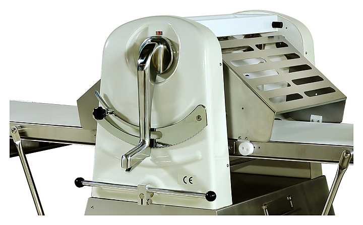 - Легко регулируемая толщина раскатываемого теста - оператор выбирает толщину слоя поворотом рычага без необходимости его дополнительной фиксации