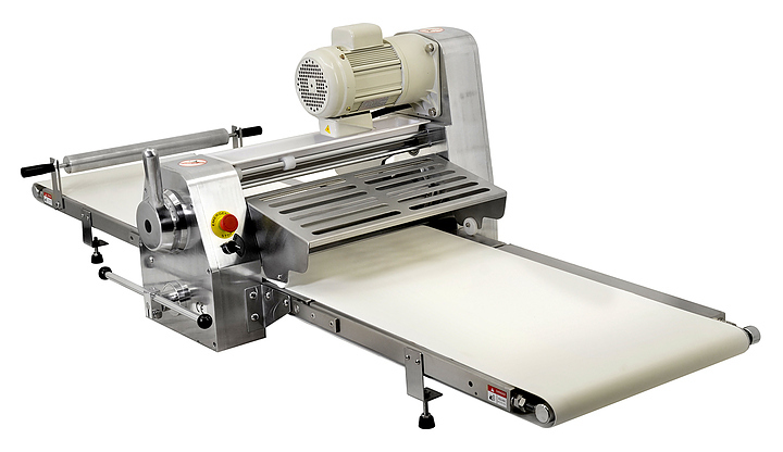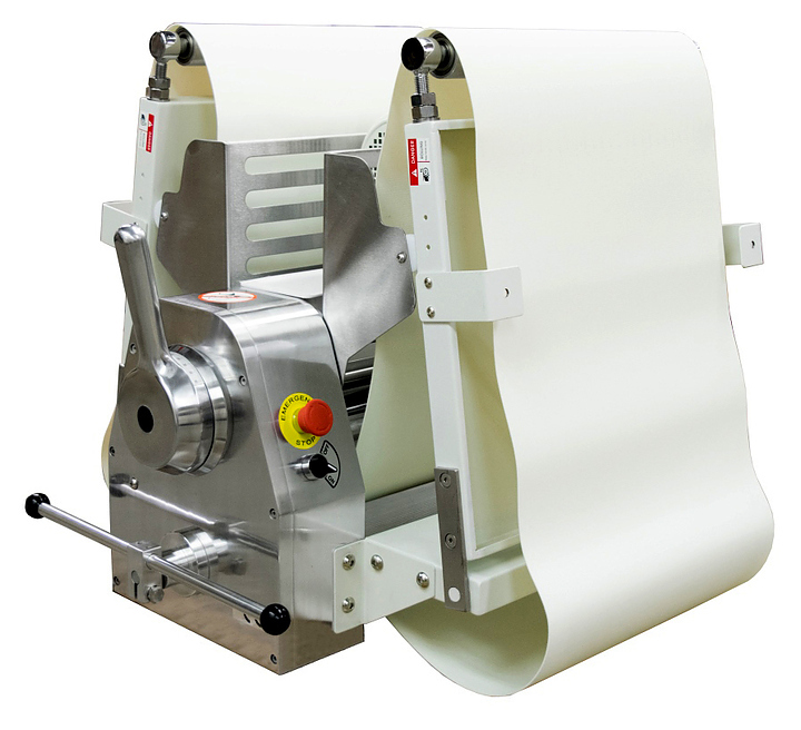 Тестораскаточная машина Kocateq OMJ520B используется на предприятиях общественного питания и торговли, в пекарнях и кондитерских для нарезания и раскатывания теста. Поверхности валков - из зеркально полированного хрома, скребок - из пластика, полотна конвейера - из нетканого полимерного материала, защитные экраны валков - из нержавеющей стали AISI 304, корпус - из стали, покрытой порошковой полимерной эмалью.