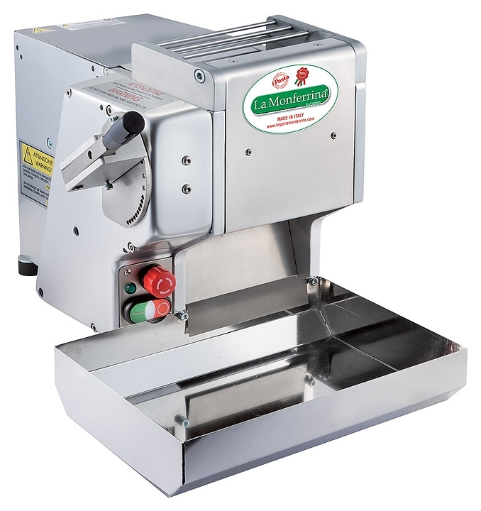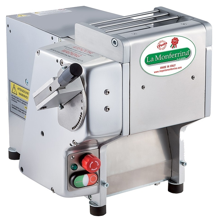 Тестораскаточная машина La Monferrina CILINDRO 170 используется на предприятиях пищевой промышленности, общественного питания и торговли для замеса и раскатки теста для изготовления равиоли (пельменей), чебуреков, лапши и других продуктов. Модель оснащена горизонтальным тестомесом и электромеханическим блоком управления. Корпус выполнен из анодированного алюминия, все соприкасающиеся с продуктом компоненты – из нержавеющей стали.