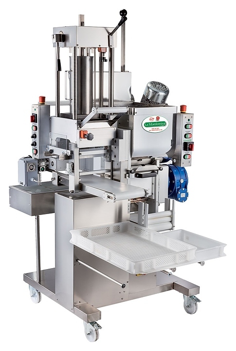 Тестораскаточная машина La Monferrina P2 PLEASURE используется на предприятиях пищевой промышленности, общественного питания и торговли для замеса и раскатки теста для изготовления равиоли (пельменей), чебуреков, лапши и других продуктов. Модель оснащена 1 горизонтальным тестомесом, ленточным конвейером и электромеханическим блоком управления.