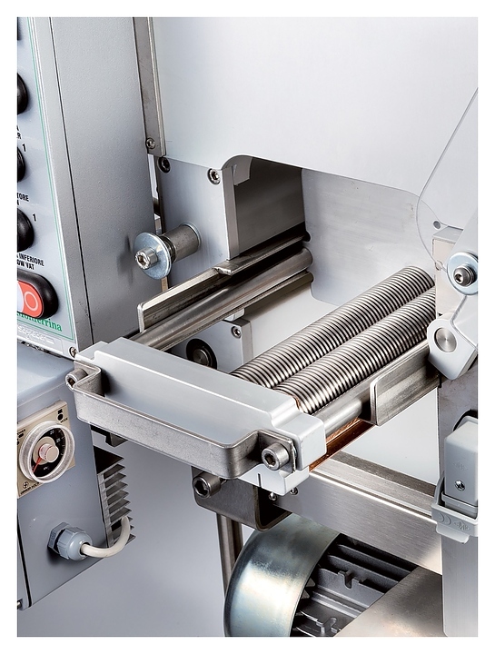 Тестораскаточная машина La Monferrina P2 PLEASURE используется на предприятиях пищевой промышленности, общественного питания и торговли для замеса и раскатки теста для изготовления равиоли (пельменей), чебуреков, лапши и других продуктов. Модель оснащена 2 горизонтальными тестомесами, ленточным конвейером и электромеханическим блоком управления.