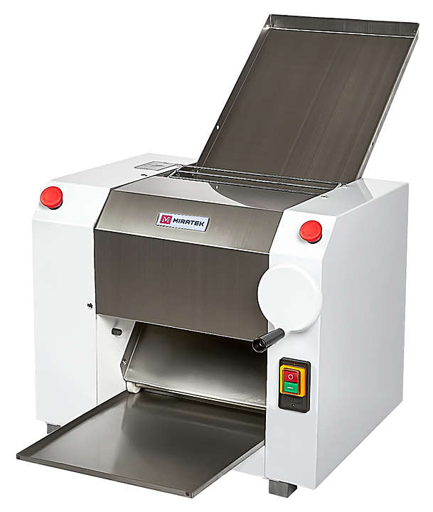 Тестораскаточная машина Miratek KRT-350 используется на предприятиях общественного питания, пищевой промышленности и торговли для автоматизации процесса раскатки заготовок из крутого теста, используемого при приготовлении пельменей, вареников, хинкалей, чебуреков, лапши, лепешек и других пищевых изделий.? Корпус выполнен из нержавеющей стали и стали, покрытой эмалью, валки и другие элементы, контактирующие с тестом - из нержавеющей стали AISI 304.