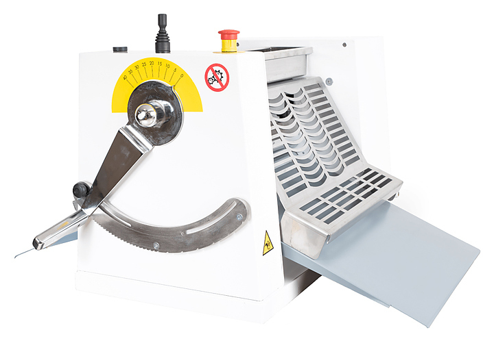 Настольная тестораскаточная машина PANERO SP 500 используется в пекарнях и кондитерских и мучных цехах, на предприятиях общественного питания и торговли для раскатки слоеного, песочного и крутого теста. Модель оснащена джойтиком для управления, защитными решектами с микровыключателем, рычагом для регулировки зазора между валками, емкостью для муки и поддоном для сбора муки. Корпус выполнен из окрашенной стали, защитные решетки и столики для теста- из нержавеющей стали.