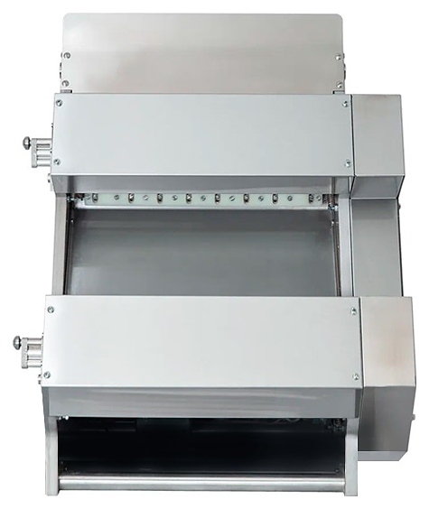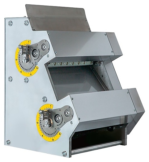Настольная полуавтоматическая тестораскаточная машина Robolabs RoboRoller ТРМ1 используется в пекарнях, кондитерских, на других предприятиях пищевой промышленности, общественного питания и торговли для механизации раскатки плотного теста для производства пельменей, чебреков и аналогичных изделий с получением равномерно раскатанного пласта необходимой толщины.? Модель оснащена 2 парами раскаточных валков с нереверсивным электроприводом и электромеханическим управлением.