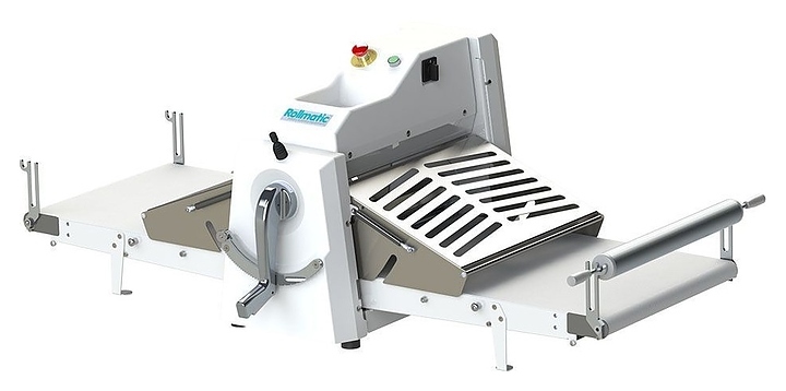 Настольная ручная тестораскаточная машина Rollmatic R50В/07 используется в пекарнях, кондитерских, на других предприятиях пищевой промышленности, общественного питания и торговли для механизации раскатки теста с получением равномерно раскатанного пласта необходимой толщины, а также производства слоеного теста.? Модель оснащена 2 складными столами с ленточным конвейером, раскаточными валками, 2 защитными решетчатыми крышками и электромеханическим управлением. Корпус выполнен из стали с антикоррозийным покрытием, крышки валков – из нержавеющей стали.