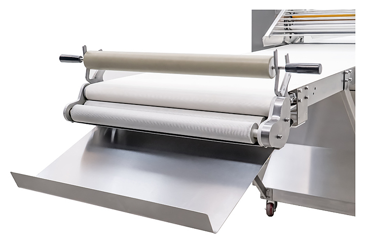 Тестораскаточная автоматическая машина SUPERMATIC 630B-SS используется на предприятиях общественного питания и торговли, в пекарнях и кондитерских для раскатки слоеного теста и формирования тестовых заготовок, используемых для последующего приготовления пиццы, лепешек и хлебобулочных изделий. Модель оснащена автоматическим мукопосыпателем и панелью управления. Корпус выполнен из нержавеющей стали AISI 304.