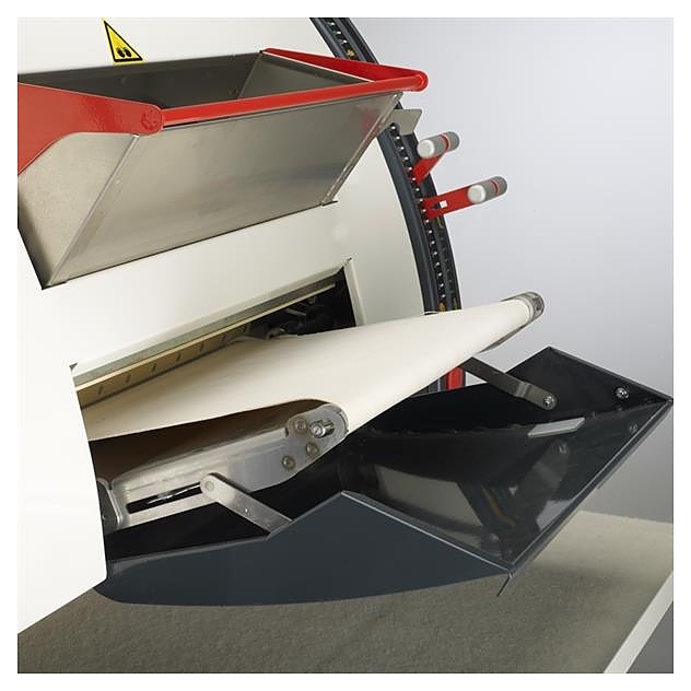 Модель превращается из формовочной машины в раскаточную при открытии переднего выводного конвейера для выхода плоских типов изделий.