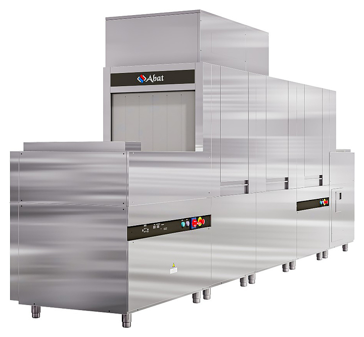 ТУннельная посудомоечная машина Abat МПТ-2000К используется на предприятиях общественного питания и торговли для мойки тарелок, стаканов, бокалов, столовых приборов, а также гастроемкостей и противней. Модель оснащена кнопочной электронной панелью управления, пальчиковым конвейером и регулируемыми по высоте ножками. Детали, контактирующие с водой, и облицовка выполнены из нержавеющей стали.
