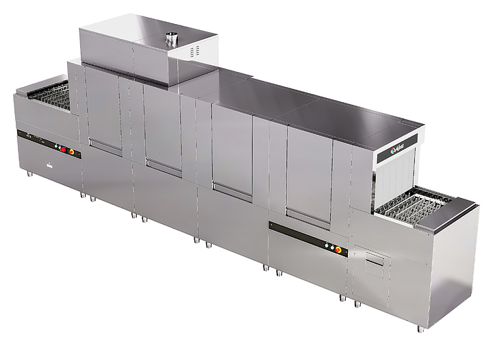 Туннельная посудомоечная машина Abat МПТ-3000К используется на предприятиях общественного питания и торговли для мойки тарелок, стаканов, бокалов, столовых приборов, а также гастроемкостей и противней. Модель оснащена кнопочной электронной панелью управления, пальчиковым конвейером и регулируемыми по высоте ножками. Детали, контактирующие с водой, и облицовка выполнены из нержавеющей стали.