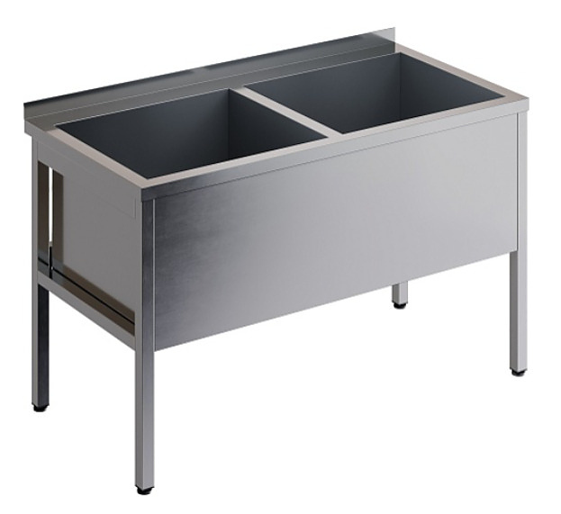 Котломоечная ванна Restoinox ВМСК-2/14/7-Б используется на предприятиях общественного питания и торговли для мытья посуды и крупногабаритного кухонного инвентаря. Модель оснащена фартуком и площадкой под смеситель с бортом. Каркас выполнен из трубы 40х40 мм нержавеющей стали AISI 430, емкость - из нержавеющей стали AISI 430.