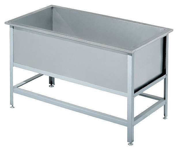 Моечная ванна ATESY ВСМ-Б-1.1450.700-02 серии Бюджет используется на предприятиях общественного питания и торговли для мытья столовой и кухонной посуды, инвентаря, овощей и фруктов, а также для оттайки замороженных пищевых продуктов. Каркас выполнен из профиля из оцинкованной стали толщиной 1,2 мм, ванна - из нержавеющей стали AISI 430 толщиной 0,7 мм, опоры регуляторов высоты ножек - из нержавеющей стали.