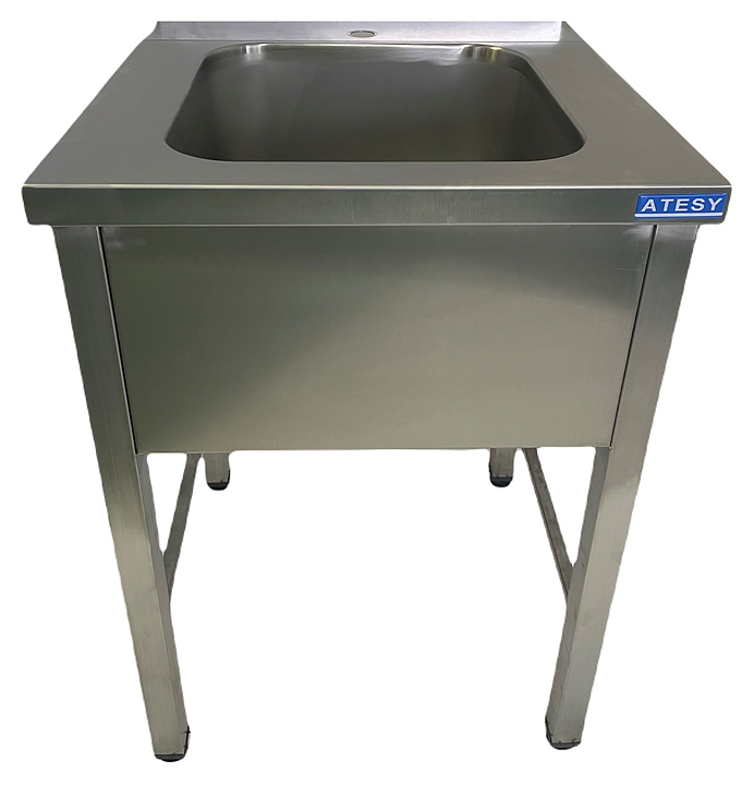 Моечная ванна ATESY ВСМЦ-Л-1.400.400.300-02 серии Люкс используется на предприятиях общественного питания и торговли для мытья столовой и кухонной посуды, инвентаря, овощей и фруктов, а также для оттайки замороженных пищевых продуктов. Каркас ванны выполнен из нержавеющей стали AISI 430 с квадратным сечением 40х40 мм и усилен обвязкой снизу, чаша ванны - из нержавеющей стали AISI 304, опорные ножки - из нержавеющей стали c пластиковой подложкой внизу.