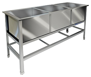 Моечная ванна KAYMAN ВМ-313/530 используется на предприятиях общественного питания и торговли для мойки продуктов питания, посуды и кухонных принадлежностей. Каркас выполнен из нержавеющего уголка AISI 430, емкости - из нержавеющей стали AISI 304.