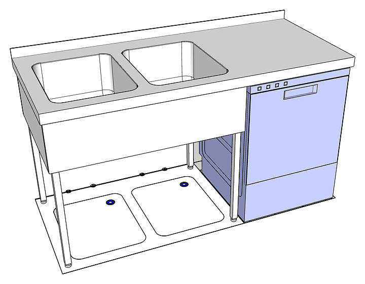 Ванна моечная КОБОР ВМЦФР/2-160/70/870 предназначен для комплектации барных стоек на предприятиях общественного питания и торовли. Модель оснащена крылом под ПММ, фартуком и оборами по емкостям с отверстием под смеситель.