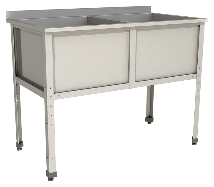 Моечная ванна Restoinox ВМС-2/7-Б-ЭН используется на предприятиях общественного питания и торговли для мытья посуды, кухонного инвентаря и продуктов. Модель оснащена площадкой под смеситель с бортом. Каркас выполнен из уголка 40х40 мм нержавеющей стали AISI 430, емкость - из нержавеющей стали AISI 430.