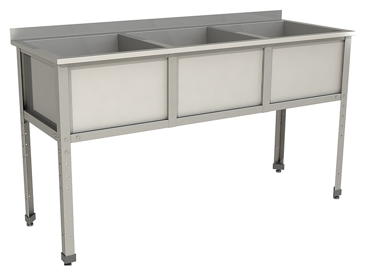 Моечная ванна Restoinox ВМС-3/5-Б-ЭН используется на предприятиях общественного питания и торговли для мытья посуды, кухонного инвентаря и продуктов. Модель оснащена площадкой под смеситель с бортом. Каркас выполнен из уголка 40х40 мм нержавеющей стали AISI 430, емкость - из нержавеющей стали AISI 430.