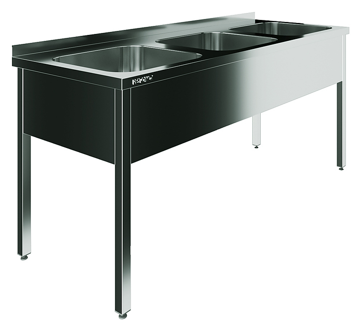 Моечная ванна Restoinox ВМЦ-3/18/6-Б используется на предприятиях общественного питания и торговли для мытья посуды, кухонного инвентаря и продуктов. Модель оснащена фартуком с 3-х сторон и бортом. Каркас выполнен из трубы 40х40 мм нержавеющей стали AISI 430, фартук - из нержавеющей стали, емкость - из нержавеющей стали AISI 304.