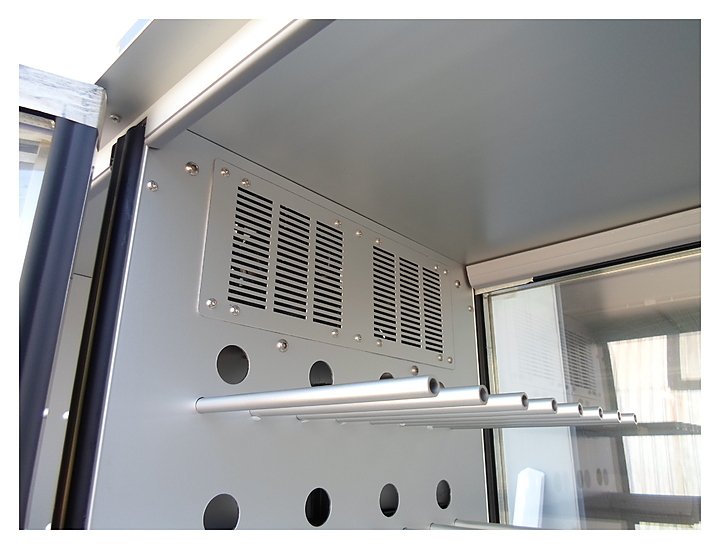 Модель оборудована инновационной системой охлаждения на основе установки охлаждающего элемента в центре витрины. Низкое энергопотребление достигается благодаря эксклюзивной системе энергосбережения, дверям с двойным остеклением и раздельным зонам, что позволяет открывать по необходимости только одну из дверей. Шкаф можно перевести в режим энергосбережения всего одним нажатием кнопки.