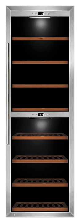 Винный шкаф CASO WineComfort 1800 Smart предназначен для охлаждения и длительного хранения бутилированного и разливного вина в частных домах, квартирах, отелях и офисах. Модель оснащена 2 температурными зонами для красного и белого вина с активным вентилятором в каждой, сенсорной панелью управления с возможностью удаленного управления через приложение Wi-Fi Smart Control и 8 деревянными съемными полками на подшипниках. Дверная рама и ручка выполнены из нержавеющей стали, дверца - из трехслойного изолирующего стекла с УФ-фильтром.