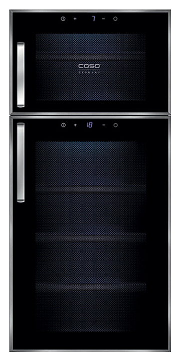 Винный шкаф CASO WineDuett Touch 21 предназначен для охлаждения и длительного хранения бутилированного и разливного вина в частных домах, квартирах, отелях и офисах. Модель оснащена 2 зонами хранения с независимой установкой температуры и отдельной сенсорной панелью управления с LED-дисплеем для каждой из них 7 хромированными полками. Дверная рама выполнена из нержавеющей стали, дверца - из черного стекла с ультрафиолетовым фильтром, защищающего напитки от потери вкуса.
