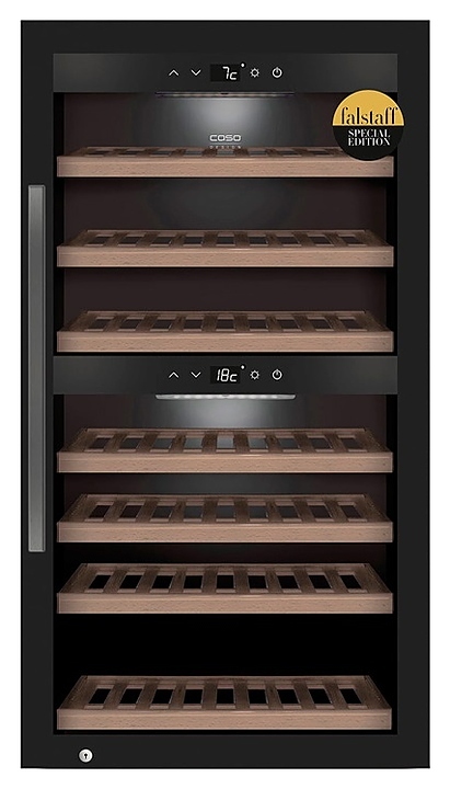 Винный шкаф CASO WineExclusive 66 Smart предназначен для охлаждения, хранения при оптимальных условиях и демонстрации бутилированного вина различных сортов в барах, ресторанах, специализированных магазинах, подсобных складских помещениях, а также домашних условиях. Модель оснащена холодильной камерой с 7 выдвижными полками на шарикоподшипниках, запираемой на ключ распашной дверью с вертикальной рукояткой и обзорным окном. Корпус выполнен из высококачественной стали с антикоррозийным покрытием черного цвета, рукоятка – из металла, полки – из массива древесины.