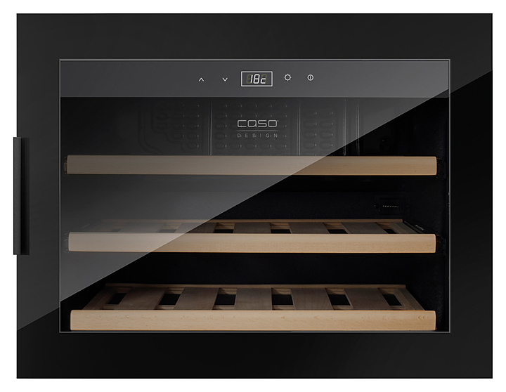 Встраиваемый винный шкаф CASO WineSafe 18 EB предназначен для охлаждения и длительного хранения бутилированного и разливного вина в частных домах, квартирах, отелях и офисах. Модель оснащена панелью управления c белым LED-дисплеем, показывающим текущую температуру, и 3 деревянными выдвижными полками. Дверная рама и ручка выполнены из черной стали, дверца - из 3-слойного стекла с ультрафиолетовым фильтром.