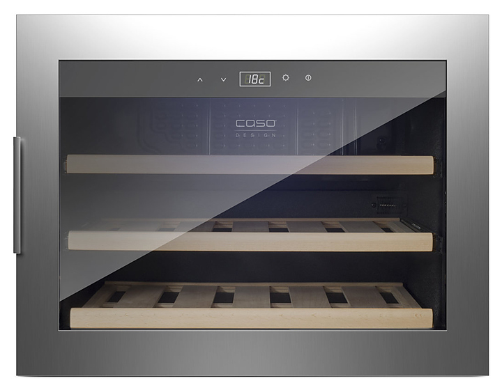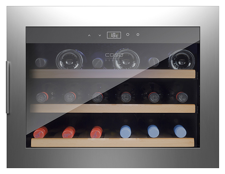 Встраиваемый винный шкаф CASO WineSafe 18 EB предназначен для охлаждения и длительного хранения бутилированного и разливного вина в частных домах, квартирах, отелях и офисах. Модель оснащена панелью управления c белым LED-дисплеем, показывающим текущую температуру, и 3 деревянными выдвижными полками. Дверная рама и ручка выполнены из нержавеющей стали, дверца - из 3-слойного стекла с ультрафиолетовым фильтром.