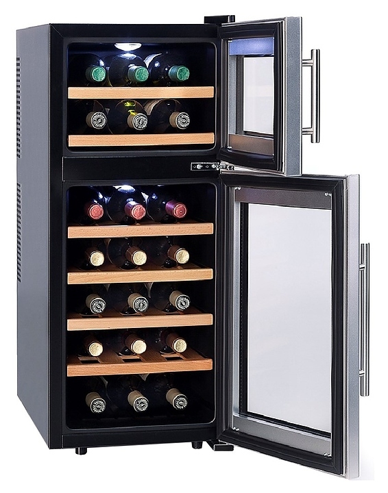 Винный шкаф Cavanova CV021-2TNS создает оптимальные условия для сохранения всех вкусовых свойств разливного вина в барах, ресторанах, специализированных магазинах, частных домах или квартирах. Модель оснащена сенсорным управлением и внутренней светодиодной подсветкой мягкого синего света. Корпус выполнен из окрашенного металла, дверь - из двойного стеклопакета с защитой от УФ-лучей в рамке серебристого цвета, полки - из дерева.