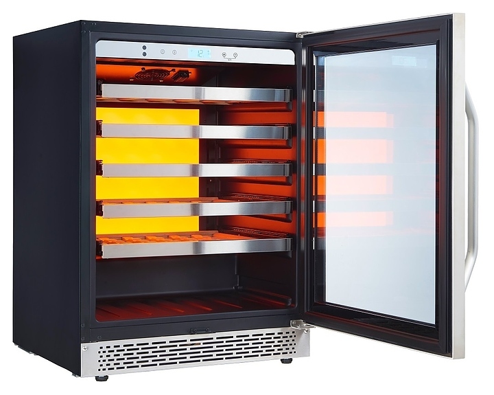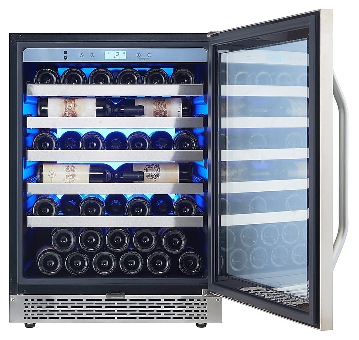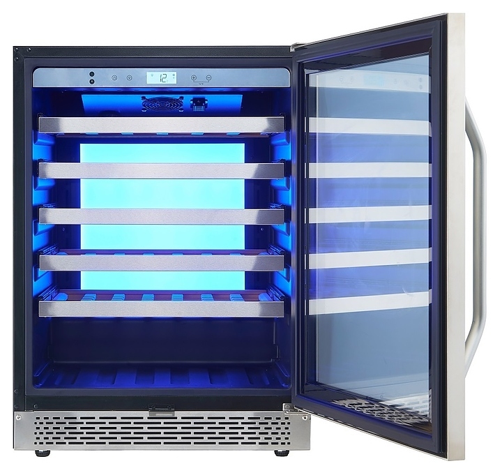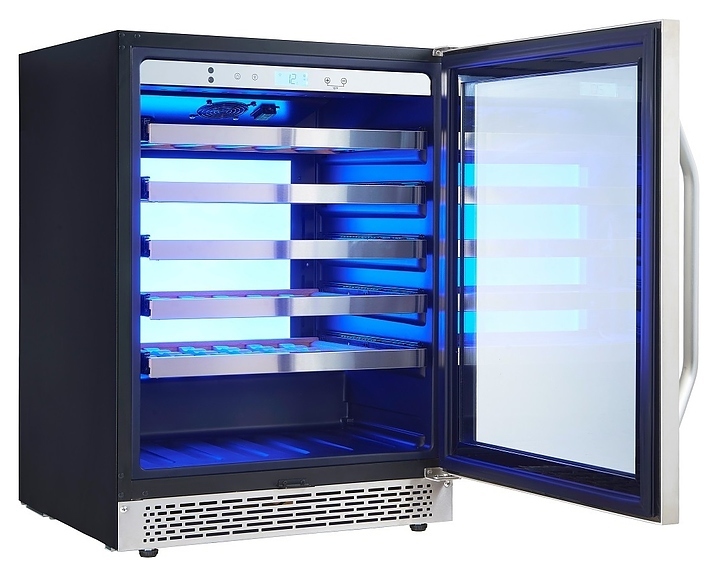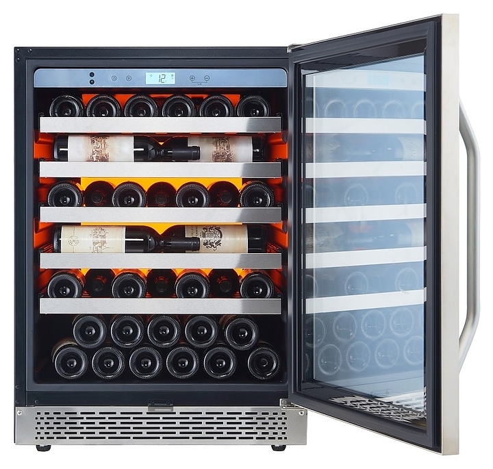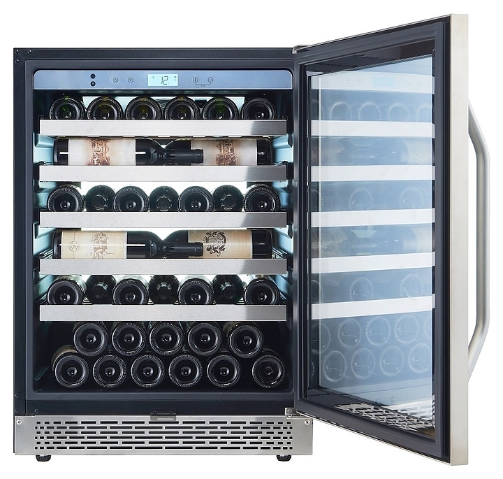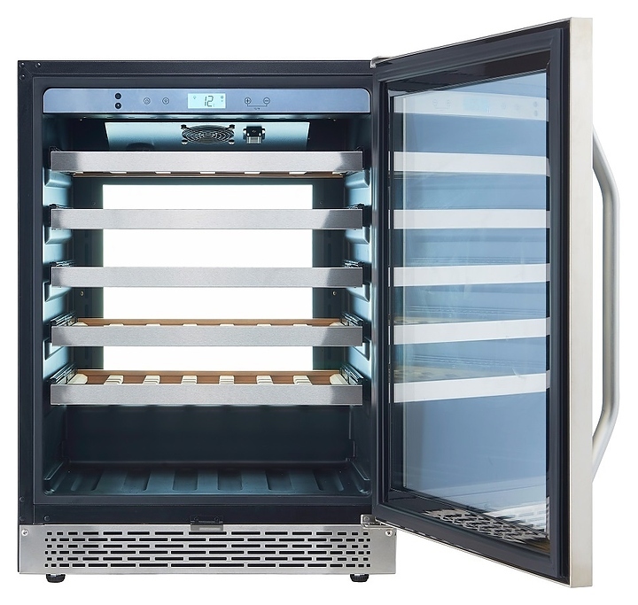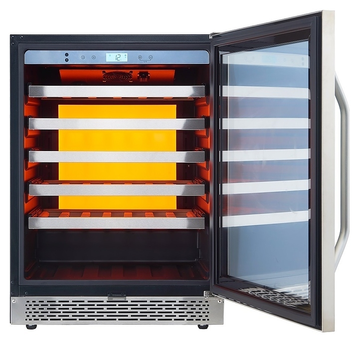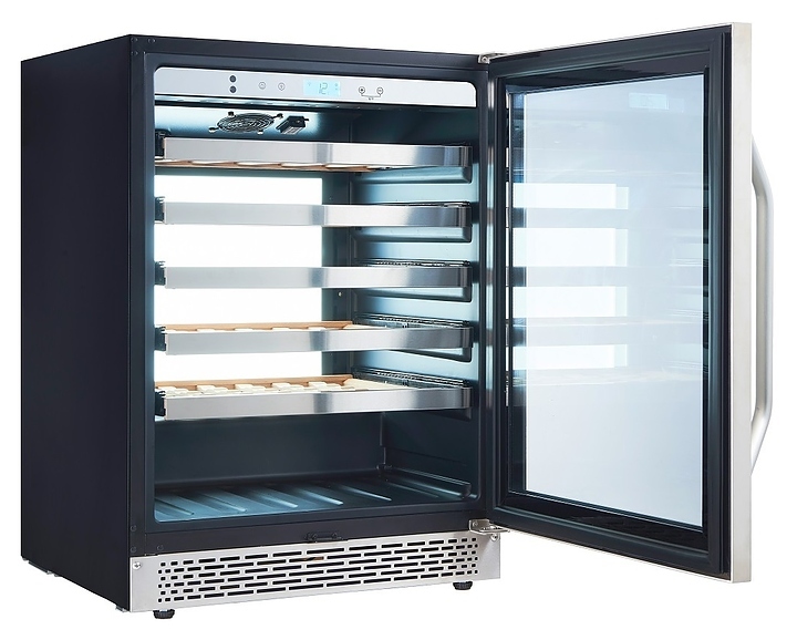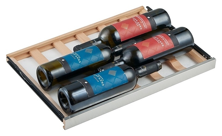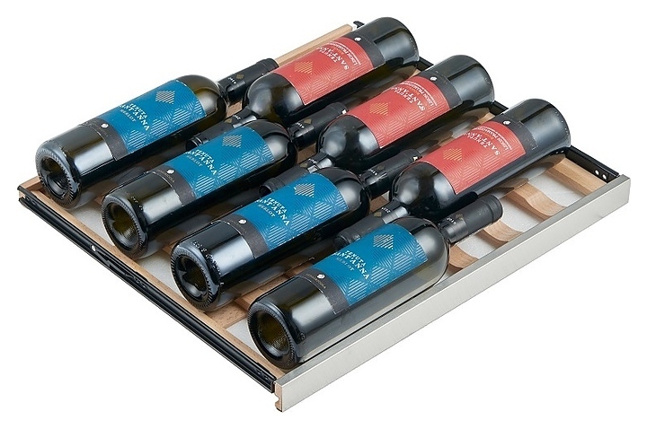В комплект поставки входят 5 полок с направляющими для размещения бутылок, комплект ключей к замку, инструкция по эксплуатации и гарантийный талон.