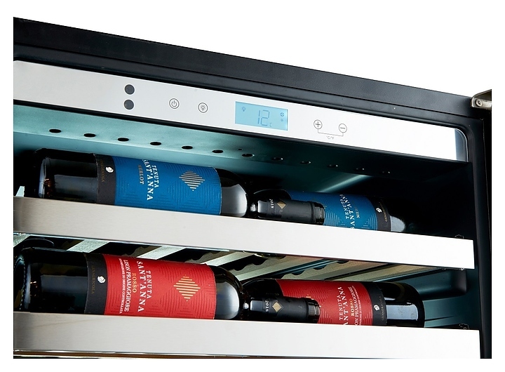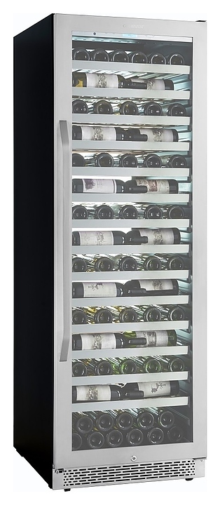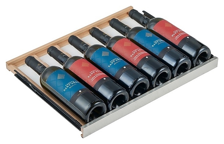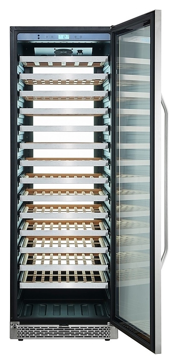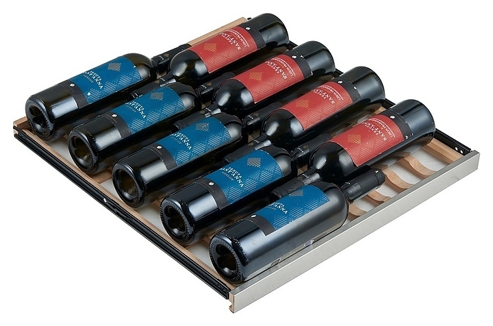 В комплект поставки входят 14 полок с направляющими для размещения бутылок, комплект ключей к замку, инструкция по эксплуатации и гарантийный талон.