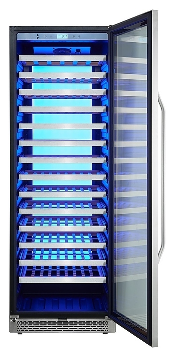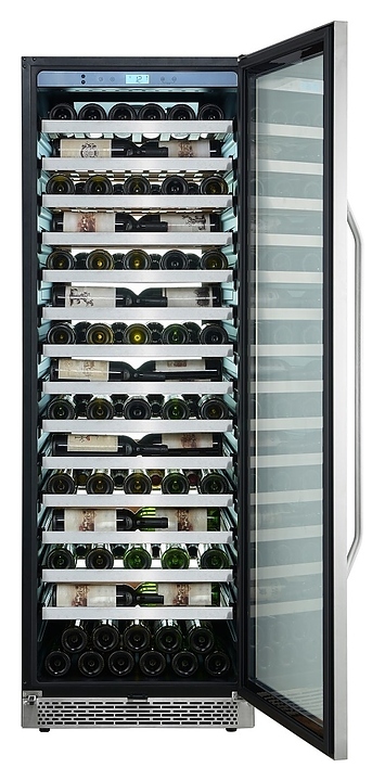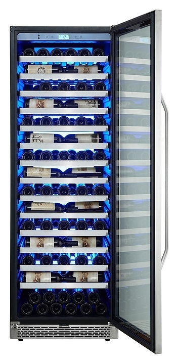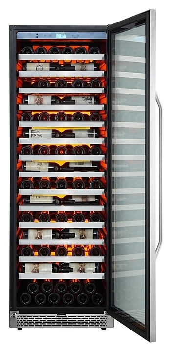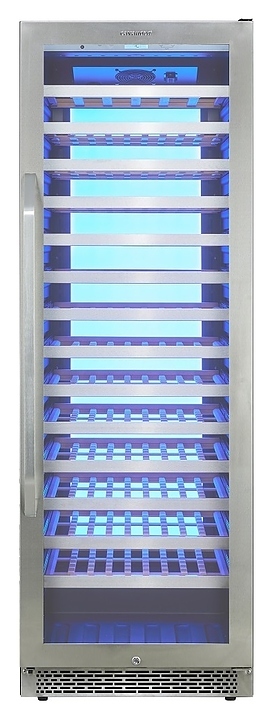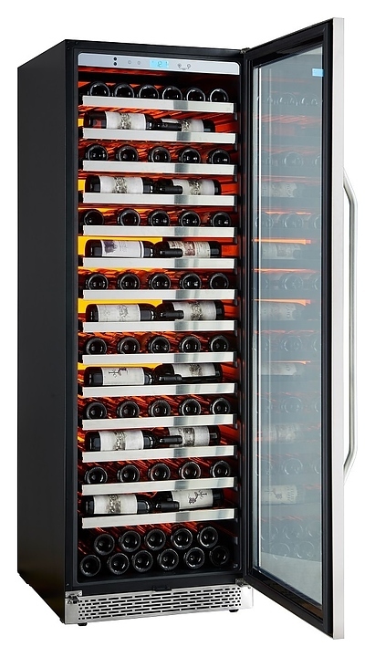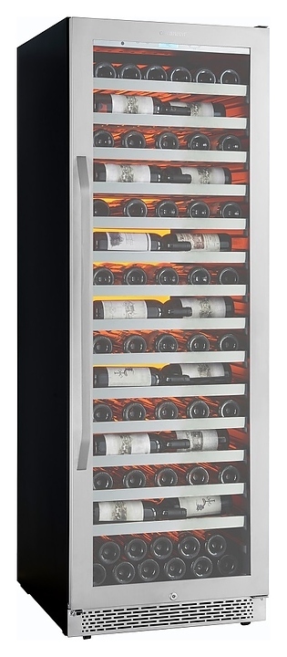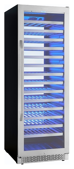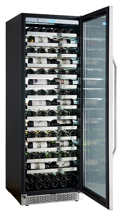 Винный шкаф Cavanova CV135-1TL предназначен для хранения при оптимальных условиях и демонстрации бутилированного вина различных сортов в барах, ресторанах, специализированных магазинах, подсобных складских помещениях, а также в домашних условиях. Модель оснащена монотемпературной холодильной камерой, правосторонней распашной дверью с длинной вертикальной рукояткой, прозрачным обзорным остеклением, цокольной решеткой и расположенной за дверью в верхней части фронта сенсорной панелью управления с жидкокристаллическим дисплеем индикации. Корпус выполнен из металла с антикоррозийным покрытием черного цвета, фронт рамы двери и рукоятка с поверхностью серебристого оттенка, полки – из массива древесины.