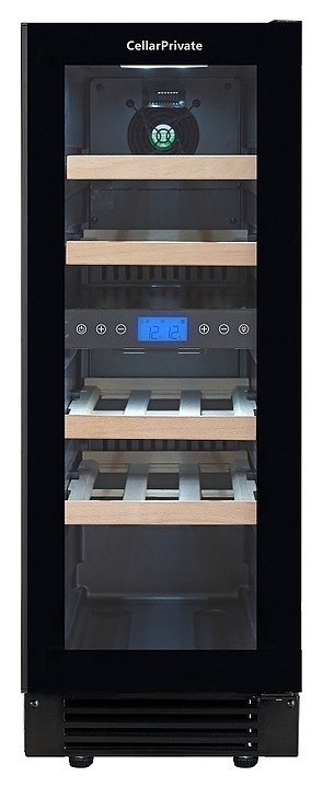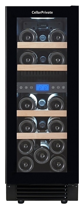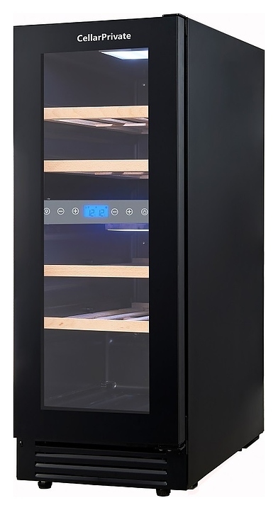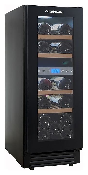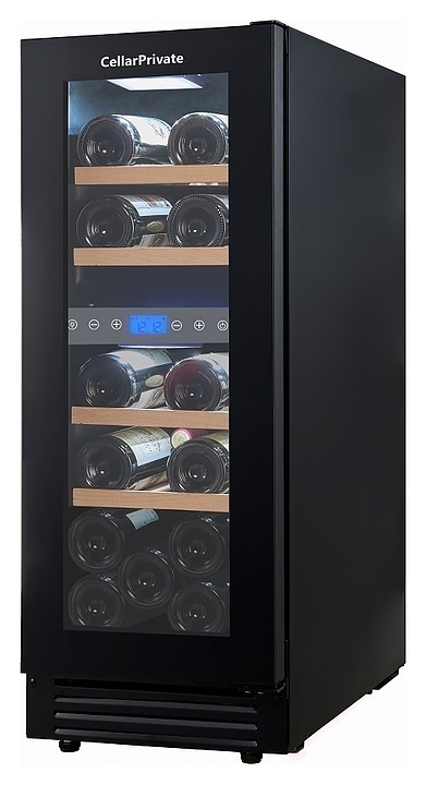 Встраиваемый винный шкаф Cellar Private CP017-2TBH предназначен для хранения при оптимальных условиях бутилированного вина различных сортов в барах, ресторанах, специализированных магазинах, подсобных складских помещениях, а также в домашних условиях. Модель оснащена холодильной камерой с 2 температурными зонами, 4 съемными полками, распашной перенавешиваемой дверью со скрытой рукояткой и прозрачным тонированным обзорным стеклом, а также сенсорной панелью управления с жидкокристаллическим дисплеем внутри камеры. Корпус выполнен из металла с покрытием черного цвета, полки – из массива древесины.