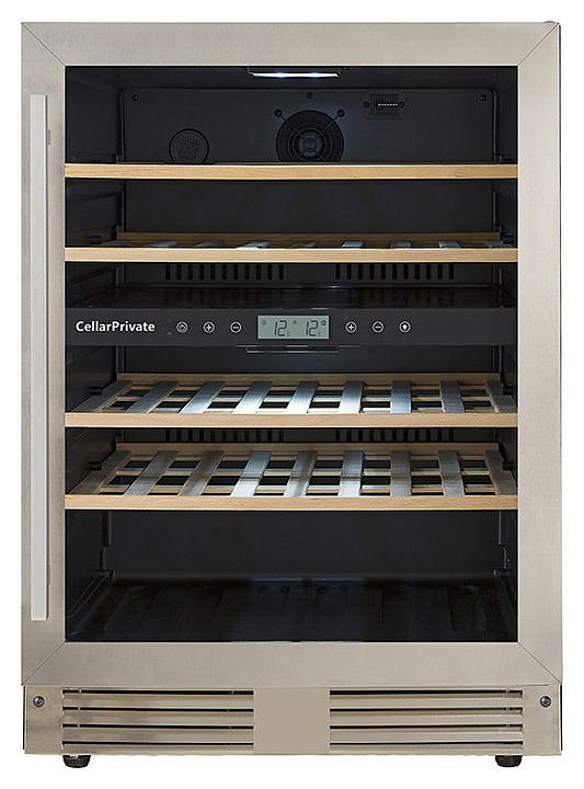 Винный шкаф Cellar Private CP043-2T создает оптимальные условия для сохранения всех вкусовых свойств разливного вина в барах, ресторанах, специализированных магазинах, частных домах или квартирах. Модель оснащена светодиодной подсветкой мягкого синего цвета. Корпус выполнен из окрашенного металла, дверь - из серебристой металлической рамки и двойного тонированного стеклопакета с УФ-фильтром, полки - из дерева.