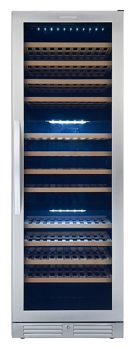 Винный шкаф Cellar Private CP154-3T создает оптимальные условия для сохранения всех вкусовых свойств разливного вина в барах, ресторанах, специализированных магазинах, частных домах или квартирах. Модель оснащена цифровым дисплеем, сенсорным управлением, выключаемой светодиодной подсветкой холодного белого цвета, замком и 12 съемными полками. Корпус выполнен из окрашенного металла, дверь - из металлической рамы и двойного тонированного стеклопакета с УФ-фильтром, полки - из древесины.