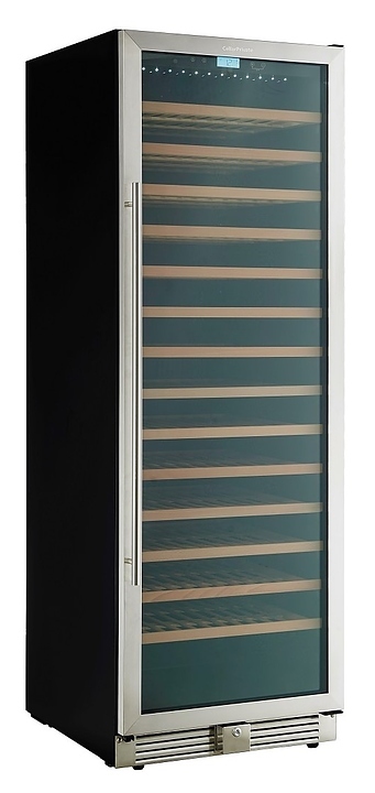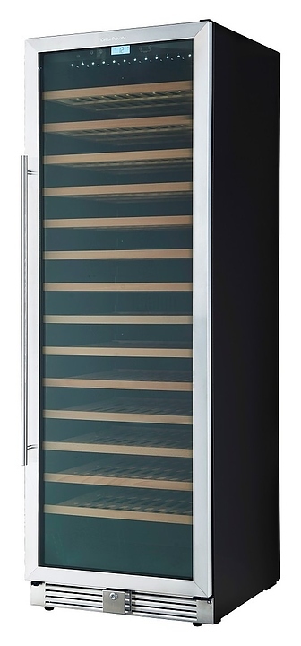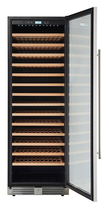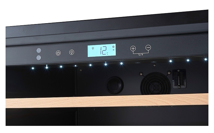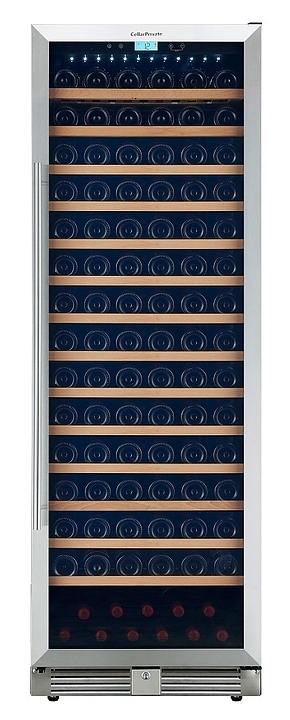 Встраиваемый винный шкаф Cellar Private CP165-1T предназначен для хранения при оптимальных условиях бутилированного вина различных сортов в барах, ресторанах, специализированных магазинах, подсобных складских помещениях, а также в домашних условиях. Модель оснащена 14 съемными полками, распашной перенавешиваемой дверью и прозрачным тонированным обзорным стеклом, а также сенсорной панелью управления с жидкокристаллическим дисплеем внутри камеры. Корпус выполнен из металла с покрытием черного цвета, рама двери – из пластика, полки – из массива древесины, ручка - из металла.