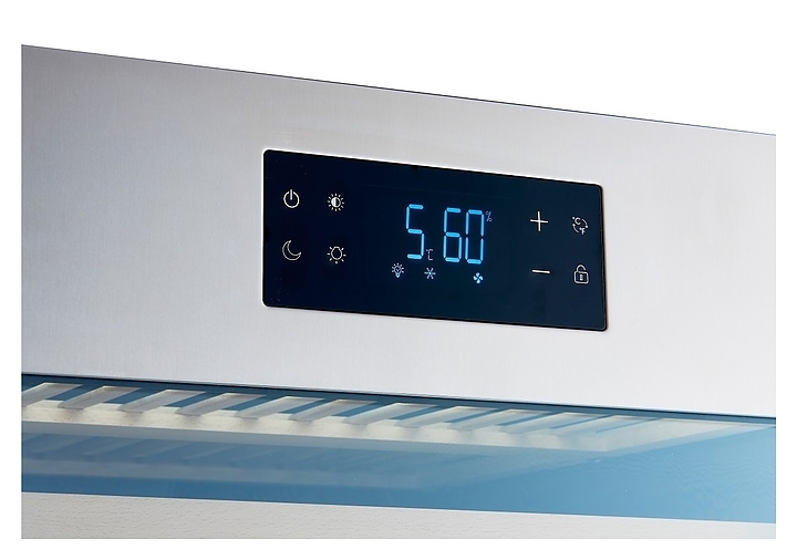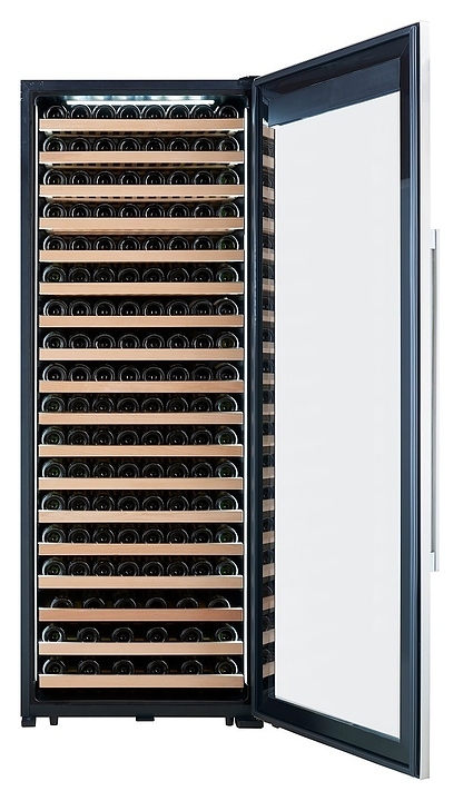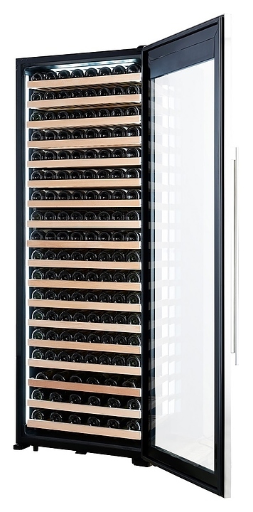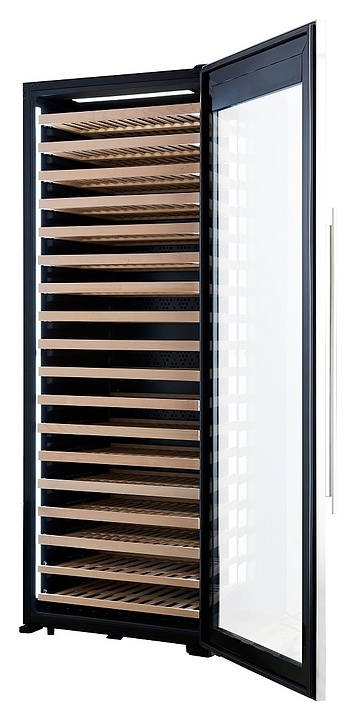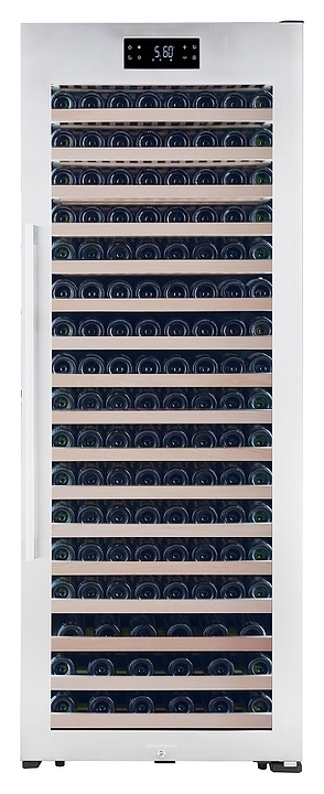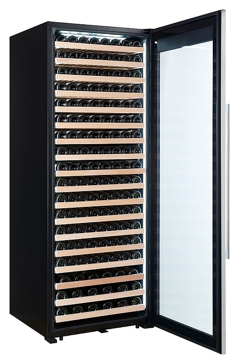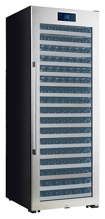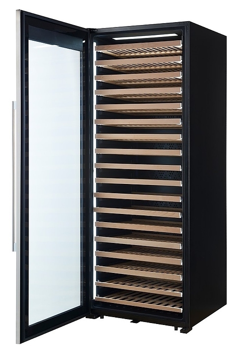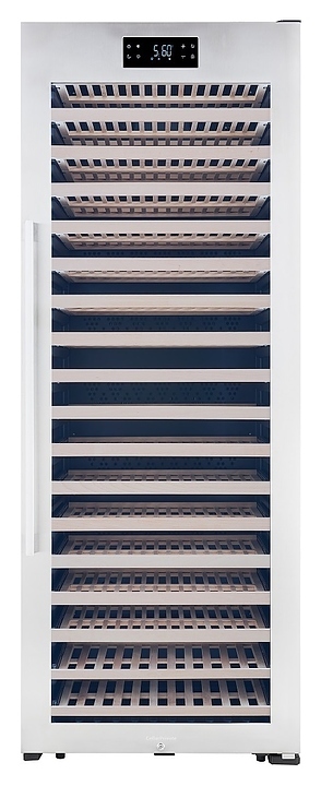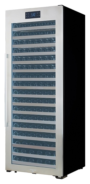Винный шкаф Cellar Private CP344S предназначен для хранения при оптимальных условиях и демонстрации бутилированного вина различных сортов в барах, ресторанах, специализированных магазинах, подсобных складских помещениях, а также в домашних условиях. Модель оснащена монотемпературной холодильной камерой, правосторонней распашной дверью с длинной вертикальной рукояткой, прозрачным обзорным остеклением и расположенной в верхней части фронта сенсорной панелью управления с дисплеем индикации. Корпус выполнен из металла с антикоррозийным покрытием черного цвета, рама двери – из металла и пластика с поверхностью серебристого оттенка, полки – из массива древесины.