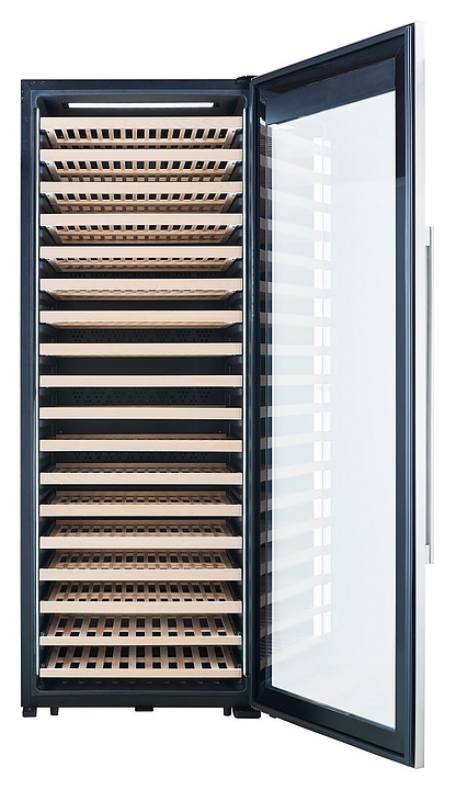 В комплект поставки входят 18 полок с направляющими для размещения бутылок, комплект ключей к замку, инструкция по эксплуатации и гарантийный талон.