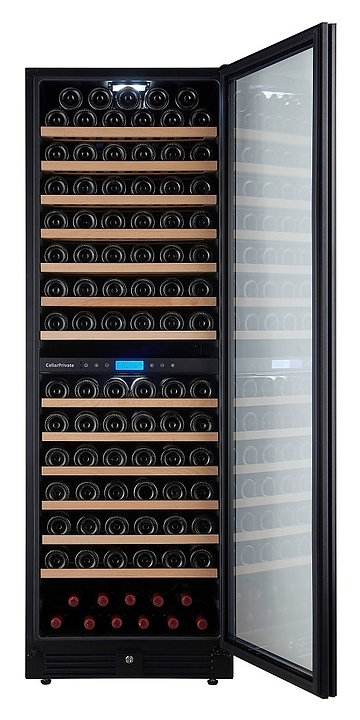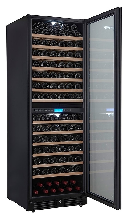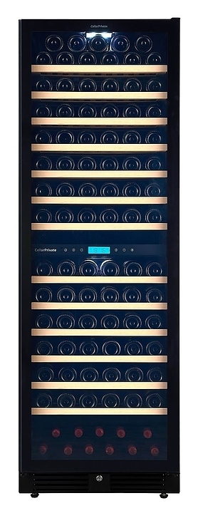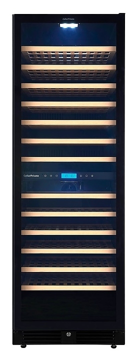 Встраиваемый винный шкаф Cellar Private СP165-2TBH предназначен для хранения при оптимальных условиях бутилированного вина различных сортов в барах, ресторанах, специализированных магазинах, подсобных складских помещениях, а также в домашних условиях. Модель оснащена холодильной камерой с 2 температурными зонами, 13 съемными полками, распашной перенавешиваемой дверью со скрытой рукояткой и прозрачным тонированным обзорным стеклом, а также сенсорной панелью управления с жидкокристаллическим дисплеем внутри камеры. Корпус выполнен из металла с покрытием черного цвета, рама двери – из пластика, полки – из массива древесины.