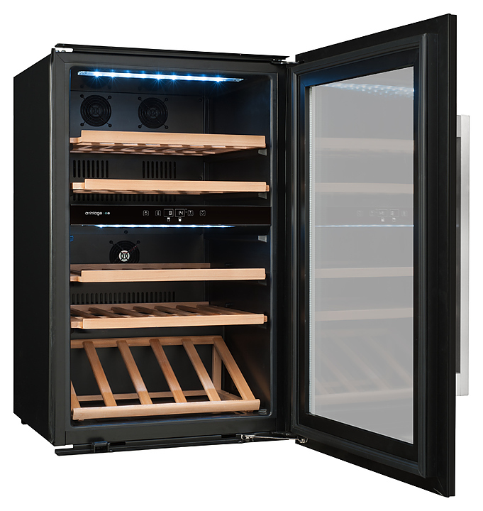 Двухзонный винный шкаф Climadiff Avintage AVI48CDZ предназначен для хранения вина при определенном уровне влажности и температуры в ресторанах, специализированных магазинах, отелях, подсобных складских помещениях, в частных домах или квартирах. Модель оснащена электронным термостатом с цифровым дисплеем, антивибрационной системой, 2 регулируемыми ножками и перенавешиваемой стеклянной дверцей. Корпус выполнен из металла, внутренняя облицовка - из ПВХ.
