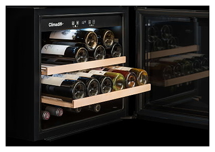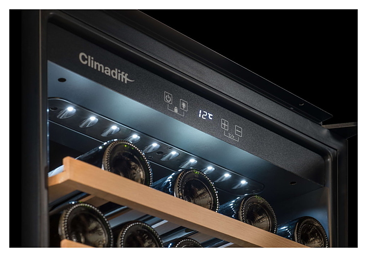 Винный шкаф Climadiff CBI28S1B предназначен для хранения вина при определенном уровне влажности и температуры в ресторанах, специализированных магазинах, отелях, подсобных складских помещениях, в частных домах или квартирах. Модель оснащена термометром с цифровым дисплеем, подсветкой и системой антивибрации. Полки выполнены из дерева.