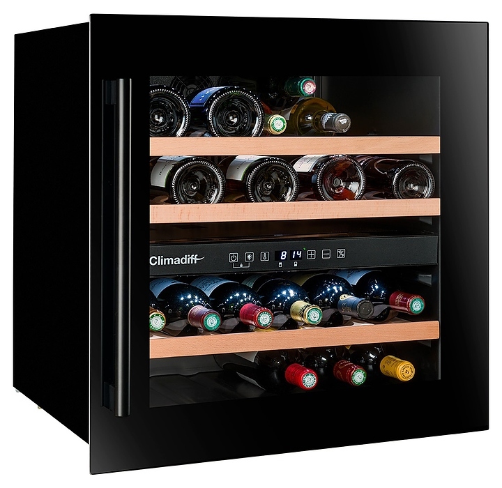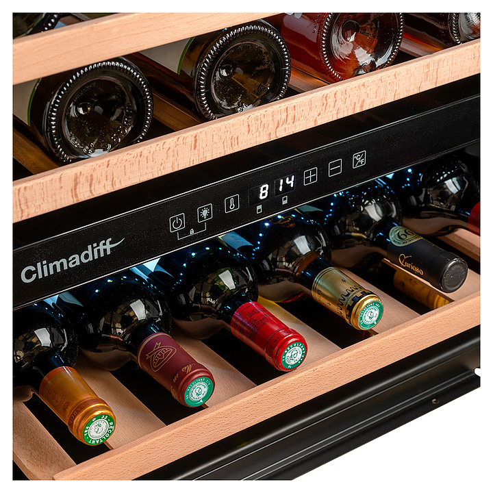 Винный шкаф Climadiff CBI40DB1 предназначен для хранения при оптимальных условиях и демонстрации бутилированного вина различных сортов в барах, ресторанах, специализированных магазинах, складских помещениях, гостиницах, а также домашних условиях. Модель оснащена холодильной камерой с 2 независимыми температурными зонами, правосторонней перенавешиваемой распашной дверью на скрытых петлях, длинной вертикальной рукояткой, обзорным остеклением, кабелем питания с вилкой, расположенной внутри камеры панелью управления с сенсорными клавишами и светодиодным цифровым дисплеем с белой подсветкой индикации. Корпус и рукоятка выполнены из металла с антикоррозийным покрытием черного цвета, внутренняя облицовка камеры черного цвета, остекление с дымчатой тонировкой, полки – из массива буковой древесины.